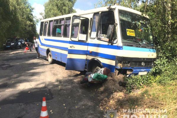 Поліцейські на місці події встановили, що водій маршрутного таксі сполученням «Володимирець-Рівне» — 41-річний рівнянин, допустив наїзд на скутер «Viper» під керуванням 71-річного жителя селища Володимирець, який рухався у попутному напрямку. Зі слів керманича автобуса, скутерист раптово змінив рух із правого краю проїзної частину на лівий.