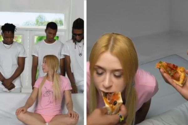 А в кінці їй пропонують спробувати шматок піци на чорному тісті (вловили аналогію, га 🙂