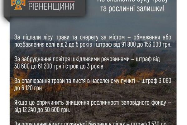 Рятувальники закликають жителів Рівненщини не спалювати сухі рослинні залишки