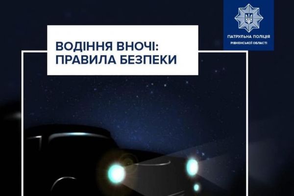 У зв’язку з тим, що світловий день взимку коротший, ніж влітку, поліція Рівненської області нагадує водіям про правила керування автомобілем у темну пору доби.