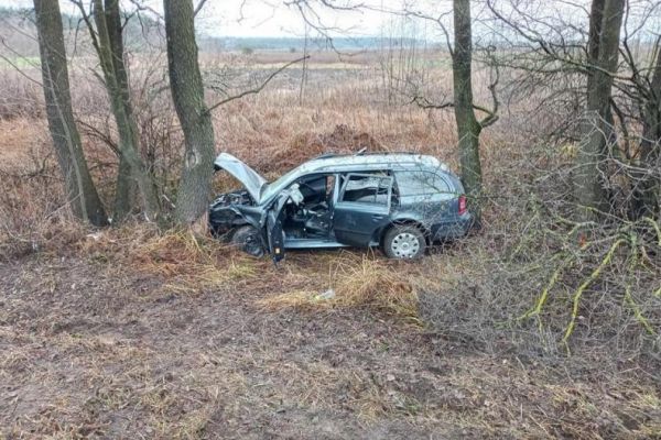 На Рівненщині автомобіль знесло з дороги і затисло між дерев