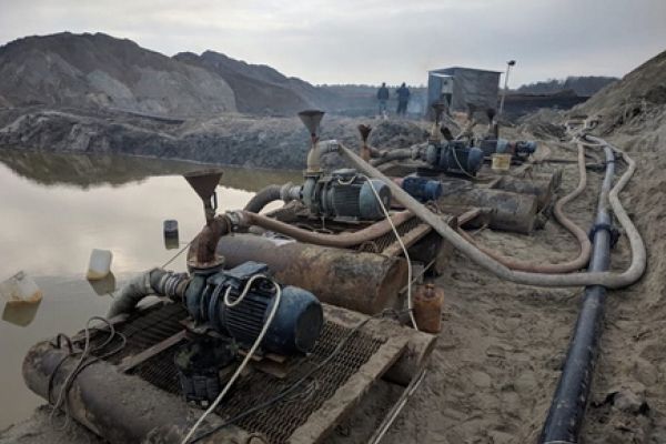 Зловмисники за допомогою придбаних шести мотопомп кустарного виробництва, систематично здійснювали незаконне видобування каміння бурштину-сирцю.