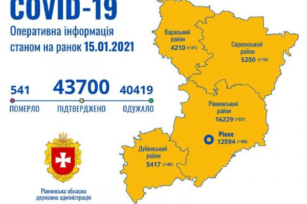 Таким чином в Рівненській області наразі маємо 43 700 випадків захворювання на коронавірусну хворобу.