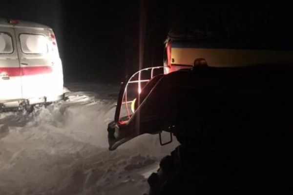 Співробітники ДСНС витягнули швидку із снігового замету, але зважаючи на те, що дорога була сильно переметена, то автомобіль швидкої не проїхав би до місця виклику. Тому фельдшер швидкої пересів в пожежний автомобіль і таким чином доїхав до хворої дитини.