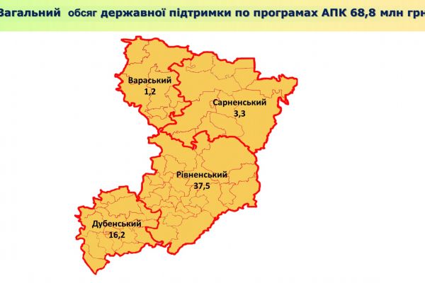 На розвиток агропромислового комплексу впливає залучення коштів державного бюджету. Лише у минулому році Рівненщина отримала 68,8 млн грн державної підтримки.