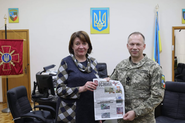 – Ми разом з військовими робимо спільну справу і разом йдемо до Перемоги. З початку 2017 року журналістські громадські організації Сумської, Рівненської та Чернігівської областей об’єднались у проєкт «Реформована преса – Українській Армії». І так ми почали робити перші бригадні газети. Приємно відзначити, що командувач Сухопутних військ ЗС України генерал-полковник Олександр Сирський не лише помітив нашу роботу, а й вона знайшла своє продовження-систематизувалася та вийшла на рівень видання для найпотужнішого виду Збройних Сил України, – розповіла Голова ГО «Асоціації регіональних ЗМІ Сумщини», заслужений журналіст України, Наталія Калініченко. Окрім цього генерал-полковник Олександр Сирський підтримав ідею щодо розширення можливостей використання комунікаційної складової з представниками цивільних ЗМІ.