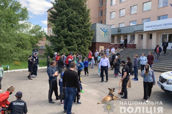 У Рівненській обласній дитячій лікарні 31 червня було гамірно та велелюдно. Дітки, які перебувають нині там на лікуванні, мали нагоду поспілкуватися із поліцейськими. У гості до них завітали працівники ювенальної превенції, кінологи та рядовий Вовчик.