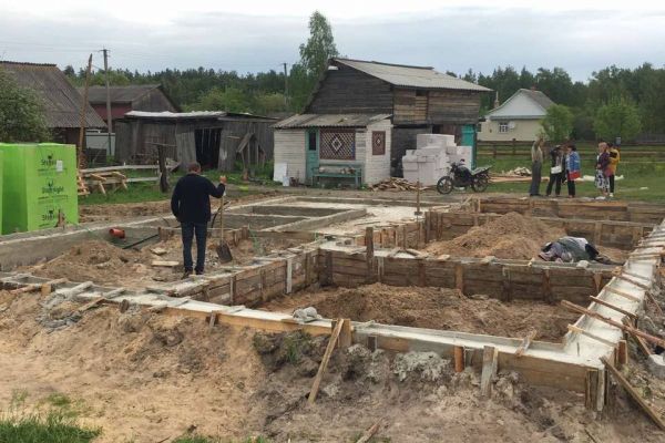 Наразі на будівельному майданчику вже залитий фундамент, закріплені бетонні стяжки. Невдовзі розпочнуть встановлювати кладку стін з піноблоків. Планується, що будинок матиме 2 поверхи, а загальна площа 193 кв м.