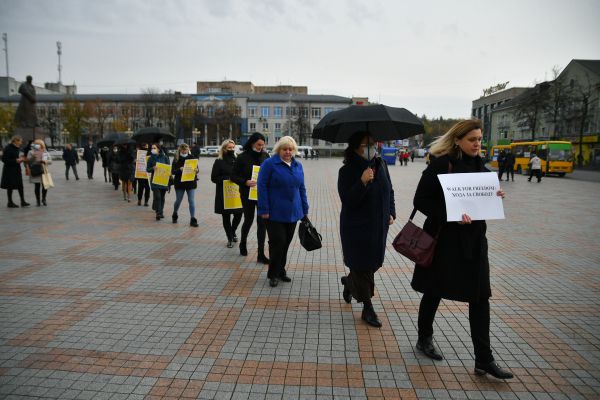 Учасники акції проголосили Декларацію про Свободу та відправились ходою через центр Рівного із символічними парасольками.