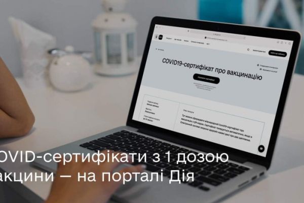 Сертифікат про одну дозу вакцини тепер можна згенерувати і на порталі Дія Для цього потрібен буде лише електронний підпис. Діяти COVID-сертифікат буде 120 днів.