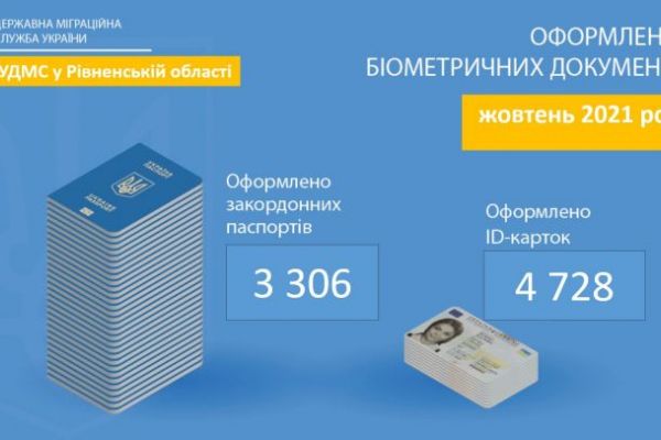 Закордонних паспортів громадяни у жовтні оформили на 800 документів менше, аніж, до прикладу, у вересні. Це зумовлено прогнозованим зменшенням попиту восени на паспорти громадян України для виїзду за кордон та, очевидно, впровадженням “червоного” рівня карантину на Рівненщині.