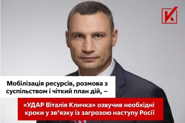 Мобілізація ресурсів, розмова з суспільством і чіткий план дій, – «УДАР Віталія Кличка» озвучив необхідні кроки у зв’язку із загрозою наступу Росії