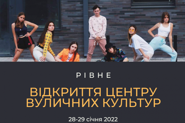 28-29 січня в обласному центрі буде два дні крутих танців та знайомств. Адже вперше у Рівному запрацює Центр вуличних культур за адресою вул. Орлова 37, 3 поверх, – повідомляють в Управлінні у справах сім’ї, молоді і спорту.