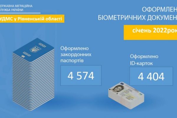 На Рівненщині оформлено 4 404 ID-карток та 4 574 паспортів для виїзду за кордон. Мешканці та гості регіону оформили у січні на 3,5 тисяч більше біометричних документів, аніж за такий період минулого року.