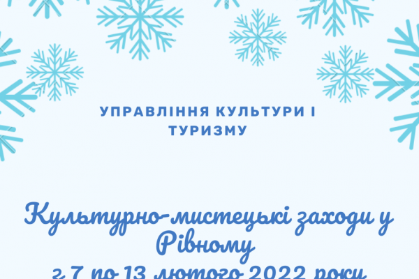 Пресслужба Рівненської міської ради опублікувала перелік культурно-мистецьких заходів, які мають відбутися у Рівному протягом тижня.