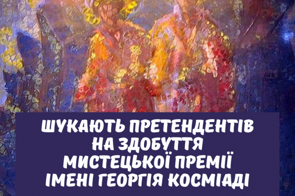 Пропозиції приймаються до 16 березня 2022 року відповідно до Положення про міську мистецьку премію імені Георгія Косміаді в галузі образотворчого мистецтва.