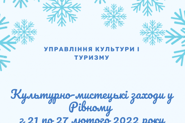 Пресслужба Рівненської міськради оприлюднила перелік культурно-мистецьких заходів, які заплановані у Рівному на поточний тиждень.
