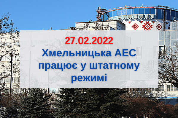 Хмельницька АЕС продовжує працювати у штатному режимі