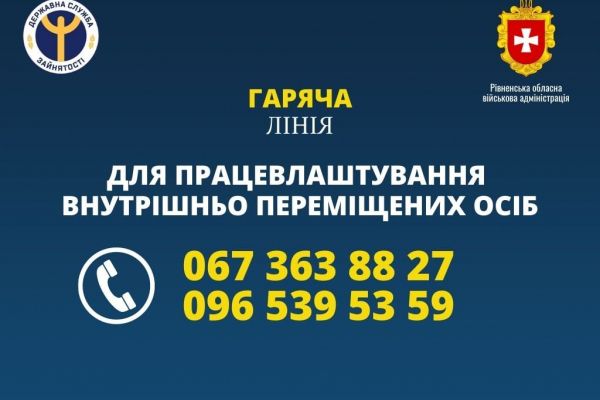 Гаряча лінія для працевлаштування внутрішньо переміщених осіб: 067 363 88 27; 096 539 53 59.