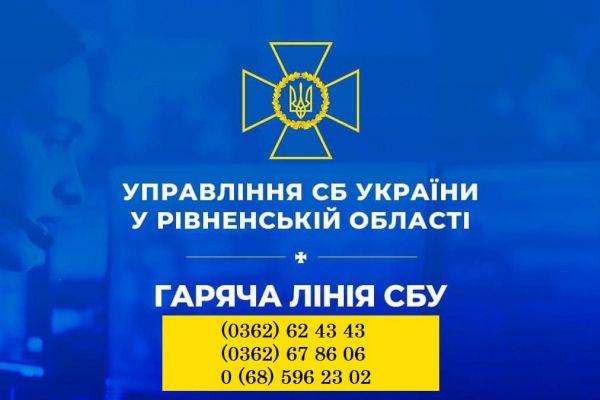 телефонуйте на «гарячу лінію» Управління СБ України в Рівненській області на номери: (0362) 678606; (0362) 624343 та