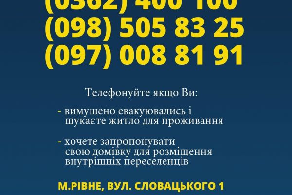 Нагадаємо, номер цілодобової гарячої лінії для вимушено переміщених осіб у Рівненській області:
