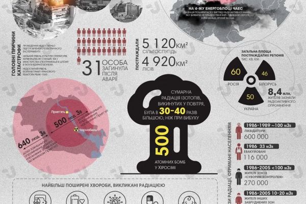 “26 квітня 1986 року внаслідок пожежі на Чорнобильській АЕС сталася найбільша в історії людства техногенна катастрофа. Від радіаційного забруднення постраждала не лише Україна, але й у більшій мірі росія, а також Білорусь.