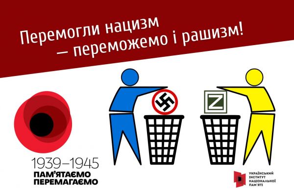 У 1939–1945 роках ворогом були нацисти, а сьогодні це рашисти – російська версія імперського націоналізму та фашизму. Тому традиційне гасло цих пам’ятних днів #ПамятаємоПеремагаємо цього року на державному рівні дещо видозмінене і звучить так: «Перемогли нацистів – переможемо і рашистів!».