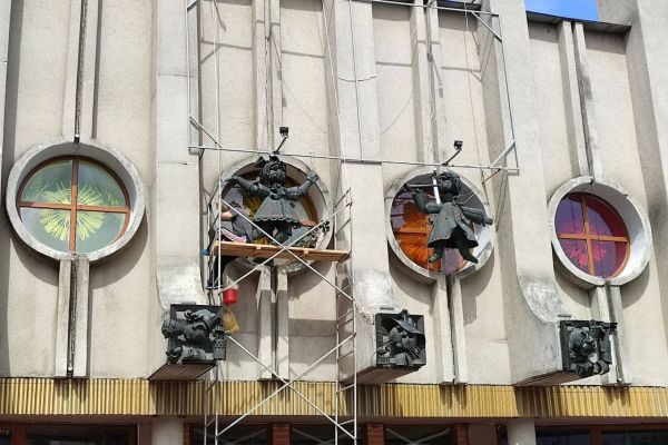 Тож не залишилися непомітними й зміни у фасаді будівлі театру ляльок: 5 травня «впав» бляшаний будьоновець, а 11 –го – не втримався радянський космонавт. Центральну частину будівлі залишилися прикрашати фігурки хлопчика із сопілкою та дівчинки, що танцює.
