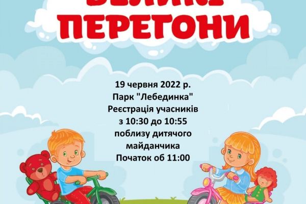 Вже цієї неділі, 19 червня, в парку Лебединка (поблизу дитячого майданчика) відбудеться відкритий фестиваль дитячих велоперегонів серед дітей дошкільного віку великі перегони.