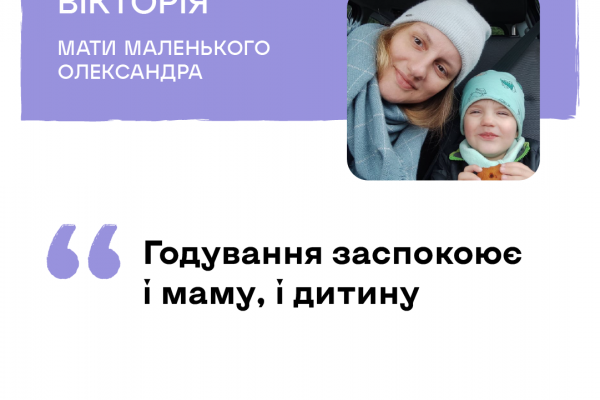 Грудне вигодовування не раз рятувало нас і під час дороги, і в стресових ситуаціях. Зараз ми живемо в Польщі в кімнаті на 6 людей. Якби не грудне вигодовування, син будив би всіх щоночі. А так він швидко заспокоюється, і ми не турбуємо тих, хто поруч із нами. Зараз сину 2 роки та 9 місяців.