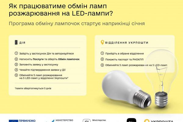 Відтак, замість 5 старих, але справних ламп розжарювання можна безкоштовно отримати 5 енергоощадних.