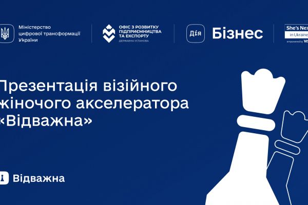 Мережа центрів Дія.Бізнес за підтримки Міністерства цифрової трансформації України (Мінцифри) і Офісу з розвитку підприємництва та експорту за сприяння глобальної ініціативи She’s Next Empowered by Visa запустили акселераційну програму «Відважна» для українок, які заснували мікро- чи малий бізнес, або мріють стартувати власну справу. Жінки-підприємниці запрошуються до подачі заявок на проєкт.