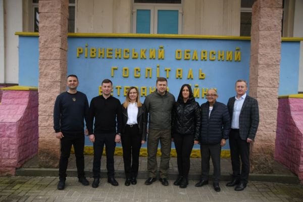 Розпочалася поїздка із відвідин Рівненського обласного госпіталю ветеранів війни, де створено і працює Республіканський центр лікування та реабілітації наслідків нейротравми. Тут проходять реабілітацію військовослужбовці зі всієї України.