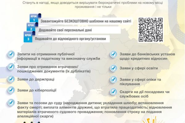 Юристи організації у рамках проєкту «Сильніші разом» складають шаблони юридичних документів та розміщують їх безкоштовно на посиланням https://www.stronger2gether.org.ua/help