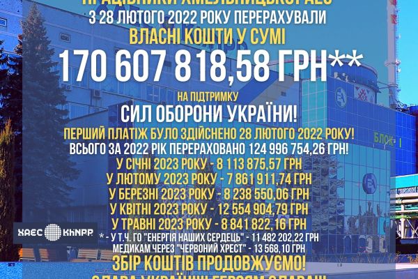 Понад 170 млн гривень зібрали працівники ХАЕС для підтримки Сил оборони України
