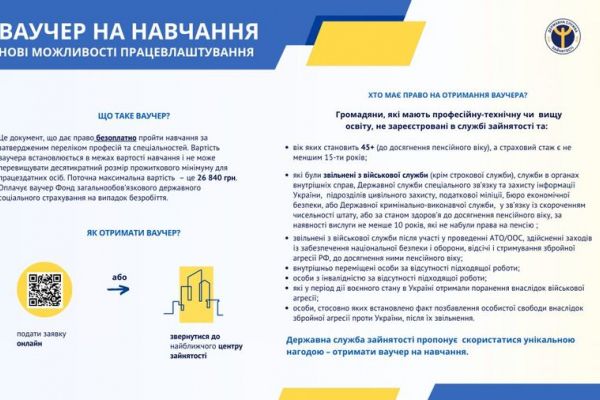 На Рівненщині можна отримати ваучер на суму до 26 840 грн для навчання новим професіям. Нагадаємо, що ваучер – це документ, який дає право здобути робітничу професію або спеціальність у закладах освіти чи у роботодавця.