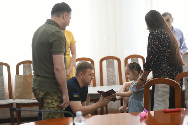 З рук начальника ОВА посмертну нагороду отримали дружина та донька молодшого сержанта Юрія Грипича.