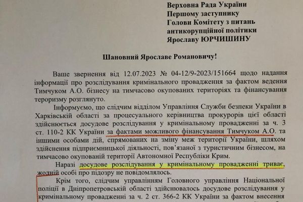 Народний депутат від Рівненщини Роман Іванісов запитує: «Позначте, будь ласка, яким чином особа, у відношенні якої відбувається кримінальне провадження (ще й за фактом співпраці з окупантами!), може очолювати стратегічне відомство і мати доступ до держаємниці? З огляду на які « заслуги» міністр з питань захисту довкілля Руслан Стрілець міг би рекомендувати цю особу на таку посаду?Адже Тимчук не має жодного відповідного досвіду роботи!А чи не варто перевірити самого міністра Стрільця на момент співпраці з ворогом?Як взагалі таке можливо на вісімдесятому місяці повномасштабної війни з Чекаємо відповіді від Служби безпеки України».