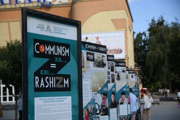 У Рівному на майдані Незалежності відкрили виставку «Комунізм = Рашизм». Вона вказує на паралелі між злочинами радянського комуністичного режиму та сучасної росії.