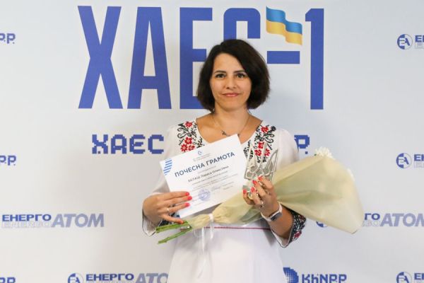 Працівниця бухгалтерії ХАЕС Лариса Бєлаш отримала Почесну грамоту ВП ХАЕС та відзнаку «Все буде Україна».
