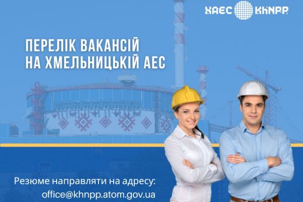 Оновлено перелік вакансій на Хмельницькій АЕС