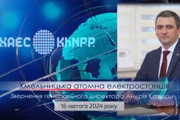 Звернення генерального директора Хмельницької АЕС Андрія Козюри від 16 лютого 2024 року щодо роботи підприємства та радіаційного стану у зоні спостереження ХАЕС.