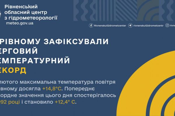 За даними спостережень Рівненський обласний центр з гідрометеорології , 29 лютого в області максимальна температура повітря досягла +14,8°С, що на 2,4°С вище попереднього рекордного показника 1992 року.