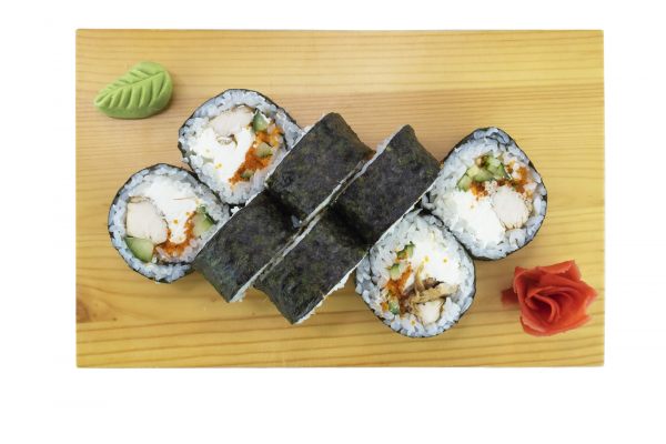 - Макі. Це роли з рису, риби, морепродуктів та овочів, загорнуті у водорості норі. Бувають простими або складними (з кількома начинками), розрізають на 6-8 частин. Різновиди – Філадельфія (вершковий сир, авокадо, огірок), Каліфорнія (крабове м’ясо, авокадо, огірок), Дракон (лосось, темпура з креветок, авокадо, огірок) тощо.