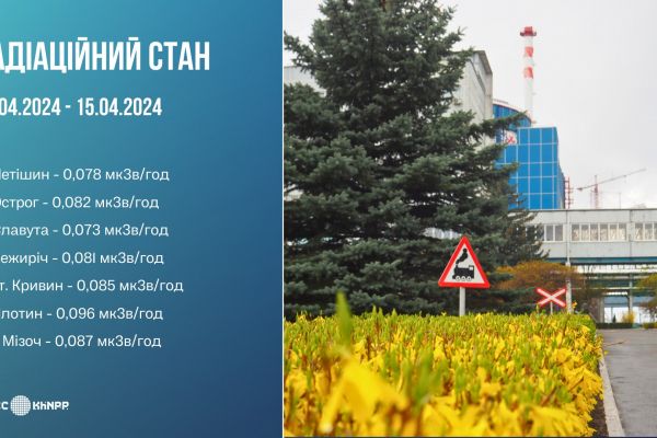 Радіаційний стан навколо Хмельницької АЕС у період з 8 по 15 квітня 2024 року на промисловому майданчику та у прилеглих регіонах знаходився на рівні, відповідному нормальній експлуатації енергоблоків, і не перевищував природних фонових значень.