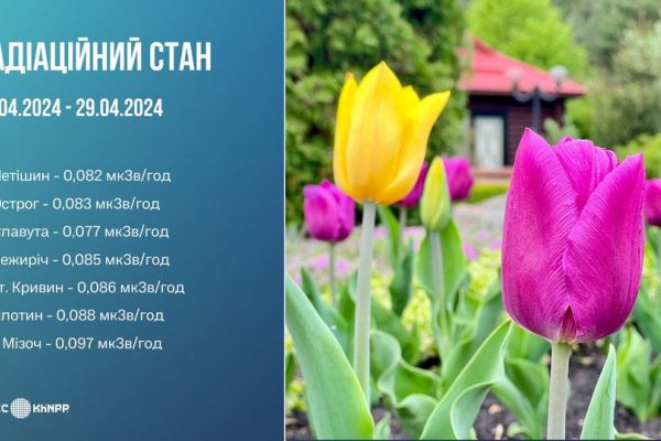Радіаційний стан навколо Хмельницької АЕС у період з 22 по 29 квітня 2024 року на промисловому майданчику та у прилеглих регіонах знаходився на рівні, відповідному нормальній експлуатації енергоблоків, і не перевищував природних фонових значень.
