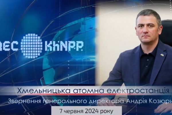 Звернення генерального директора Хмельницької АЕС Андрія Козюри від 7 червня 2024 року щодо роботи підприємства та радіаційного стану у зоні спостереження ХАЕС.