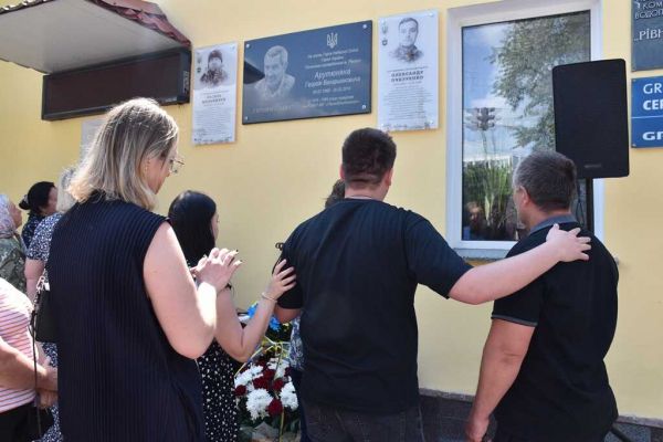Учора їх офіційно відкрили на фасаді будівлі підприємства, що на вулиці Степана Бандери у Рівному. Меморіальні дошки загиблим Героям Василю Мельничуку та Олександрові Очкуренку розмістили поруч з меморіальною дошкою іще одному загиблому патріоту України, Герою Небесної Сотні, Почесному громадянинові м.Рівне Георгію Арутюняну.