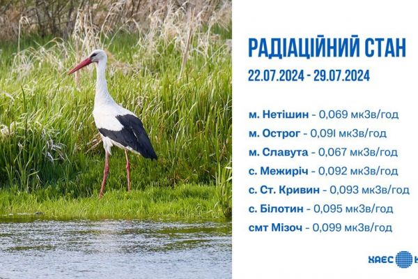 Радіаційний стан навколо Хмельницької АЕС у період з 22 до 29 липня 2024 року на промисловому майданчику та у прилеглих регіонах знаходився на рівні, відповідному нормальній експлуатації енергоблоків, і не перевищував природних фонових значень.