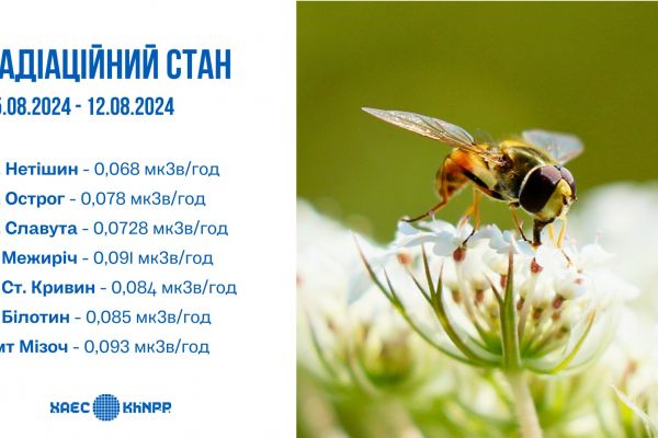 Радіаційний стан навколо Хмельницької АЕС у період з 5 по 12 серпня 2024 року на промисловому майданчику та у прилеглих регіонах знаходився на рівні, відповідному нормальній експлуатації енергоблоків, і не перевищував природних фонових значень.